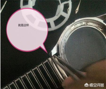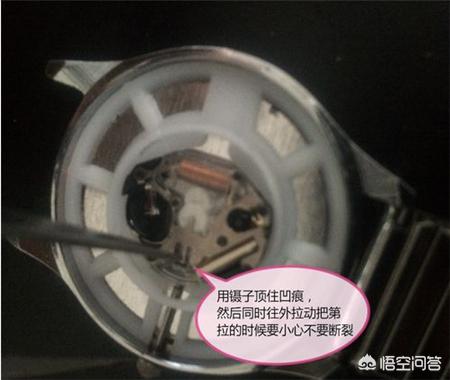 10、插进后,2把表起稍用力轻轻一顶,再把表起稍微扭动一下,秒针就松了,再用镊指钳取下秒针.再用同样的方法拆下分针