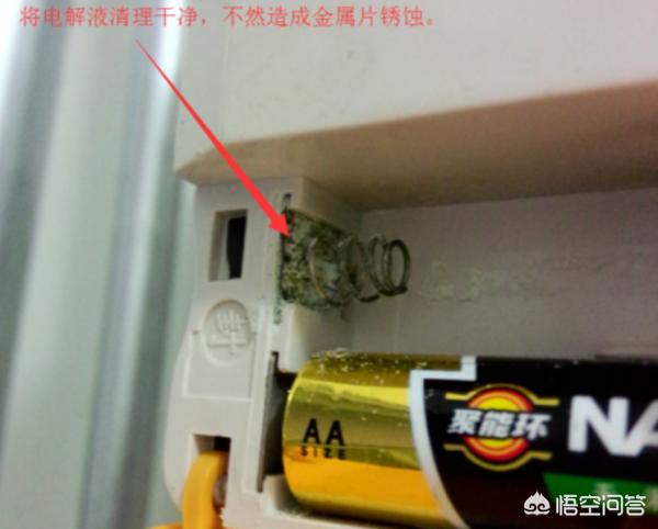 3、如果有电解液流出,应使用小刀片或螺丝刀将废旧电池流出的电解液清理干净。