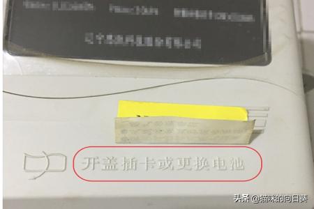 2.掀开黄色粘纸,可以看到温馨提示,换电池打开该盖子。